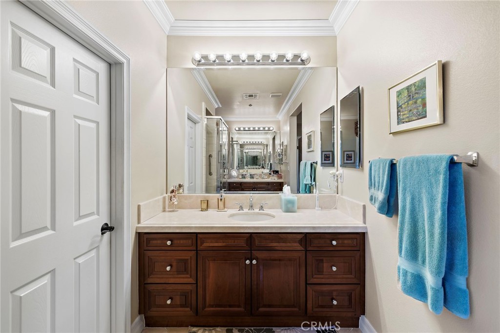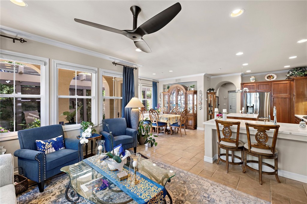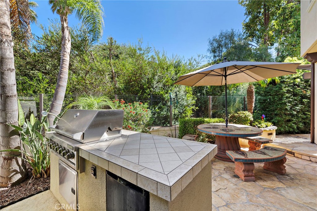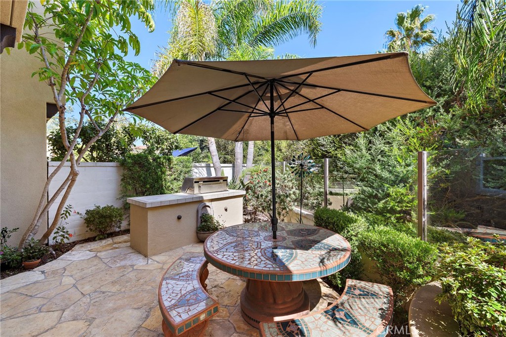 Perfectly positioned on the 9th green of the Talega Golf Course, this beautifully appointed residence blends timeless elegance with thoughtful upgrades throughout. Welcome to this incredible 3 bed 2.5 bath in a the Santalana neighborhood of Talega. From the moment you enter, refined details and custom craftsmanship set this home apart. The interior boasts TriWest-Kahrs wood flooring complemented by Tagina Tivoli Roman Scuro tile across the first floor, while the primary suite is elevated with Crema Marfil marble and a frameless glass shower enclosure. Matching Petra Latina tile carries seamlessly into the bathrooms and laundry. A custom-built California Closets system enhances the primary walk-in closet, while crown molding graces the living room, primary bedroom, and bath for a touch of sophistication. The kitchen has been extensively upgraded, featuring quartz-wrapped counters and backsplash, cherry wood soft-close raised panel cabinetry, and an air purification system integrated with the HVAC for modern comfort. A finished black marble fireplace, custom staircase railings, and upgraded insulation further reflect the home's quality. Outdoors, enjoy resort-style living with beautifully designed hardscaping and landscaping. A custom BBQ, fountain, and limestone finishes create the perfect setting for gatherings, shaded beneath a freestanding patio cover. The garage is complete with epoxy floors and custom built-in cabinets for a clean and polished finish. This home is a rare opportunity to experience luxury living with serene golf course views and an array of custom upgrades. Come enjoy all that Talega has to offer with an abundance of pools, parks, and easy access to shopping and dining.