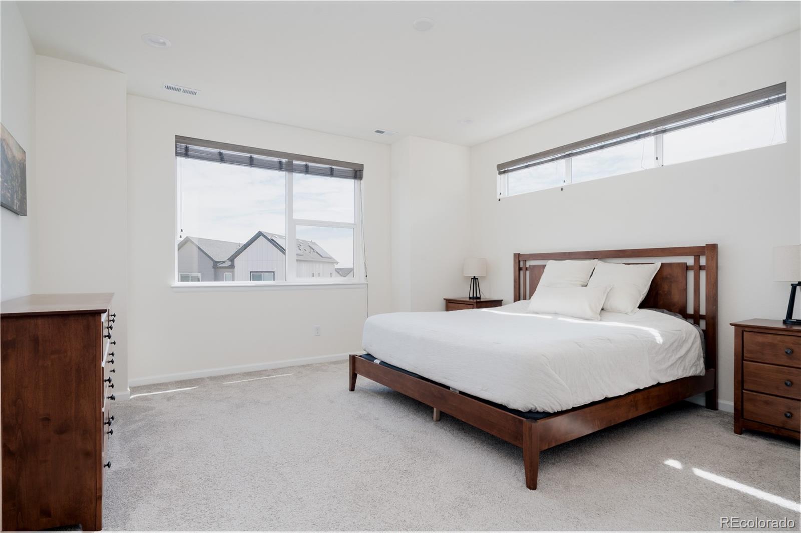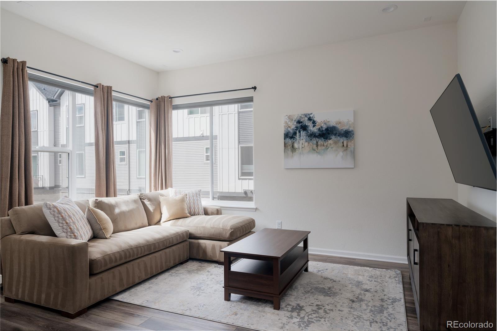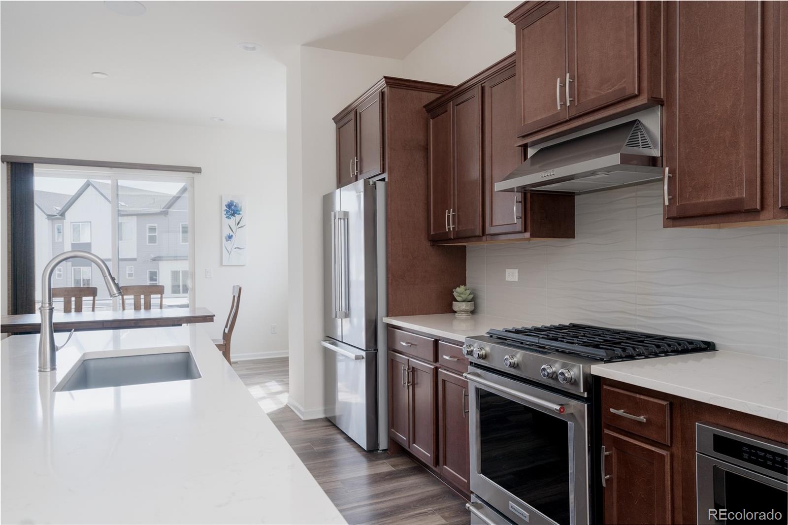 Experience the perfect blend of modern luxury and ultimate convenience in this rare and exceptional 4-bedroom end-unit townhome. Nestled in a serene, private east-facing spot, this home overlooks a peaceful grassy courtyard, offering a sense of tranquility and an abundance of natural light. Step inside to find an elevated main floor designed for both style and function. The open-concept layout features a comfortable living room, spacious dining area and a gourmet kitchen, complete with an oversized island, stainless steel appliances and plenty of room to gather or entertain. A large balcony extends your living space outdoors--ideal for morning coffee, evening sunsets, or hosting friends. Upstairs, retreat to the large primary suite, a light-filled sanctuary with a generous walk-in closet and an en-suite bathroom with a large shower and dual vanity. Two additional bedrooms, a full bathroom, and a well-placed laundry area round out the upper level, adding practicality to the thoughtful design. The lower level offers versatility to suit your lifestyle. A fourth bedroom with a walk-in closet and full bathroom make it perfect as a guest suite, home office, or workout space. Additional highlights include an oversized 2-car garage with a hot/cold hose bib for added convenience. An additional ground floor patio provides even more outdoor space to enjoy! Located in a highly sought-after area, this home is just moments from walking trails, vibrant shopping centers and restaurants. A quick walk to the light rail makes commuting and exploring a breeze with just two stops to Olde Town Arvada and seven to Union Station. Less than a 10 minute drive to downtown Golden and easy access to the mountains. Don't miss this opportunity to enjoy the benefits of low-maintenance living in a prime location!