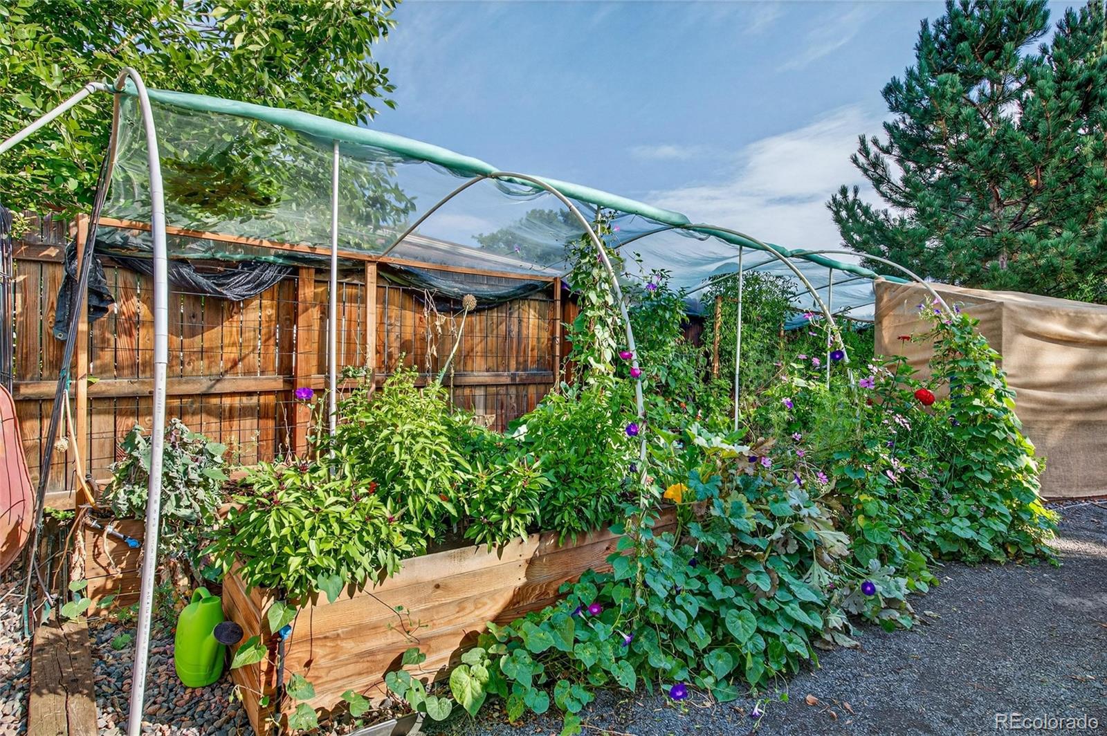 The expansive yard is ideal for families, pets, and gardeners alike. Mature aspen groves, colorful perennial flower beds, and raised garden beds with a pre-installed drip irrigation system create a private backyard retreat. A convenient storage shed adds extra functionality for tools and equipment.