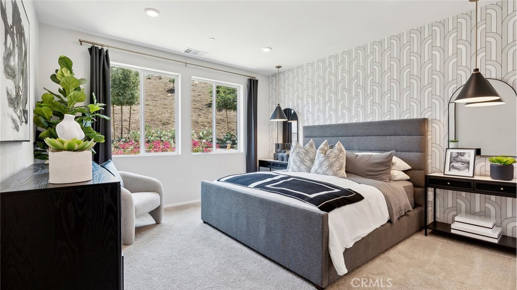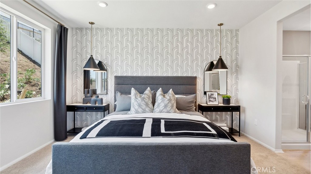 NEW CONSTRUCTION! QUICK MOVE-IN!! This 2,537 square foot home with a California Spanish exterior facade incorporates a WIDE entry, leading to the Great room, Dining area, and ISLAND kitchen with breakfast bar, Quartz counter tops, stainless steel appliances, and a pantry space. Solid surface flooring in the main living areas downstairs. Lives like a single-story with a downstairs PRIMARY BEDROOM AND EN-SUITE bathroom and another downstairs bedroom and bathroom, as well. The primary suite comes with walk-in closet and dual vanity sinks in the ensuite bathroom. The laundry room is conveniently located just behind the kitchen. There is a loft space at the top of the stairs as well! This home has White shaker-style cabinetry throughout. The home includes a direct-access 2-car garage pre-plumbed for an electric car! This truly modern home has all the Smart Home features you would expect and, is FULLY LANDSCAPED AND IRRIGATED in the front yard. The community has easy access to nearby shopping, dining, and entertainment and nearby freeway access. This home is ready to move NOW and we can't wait to Welcome you Home!