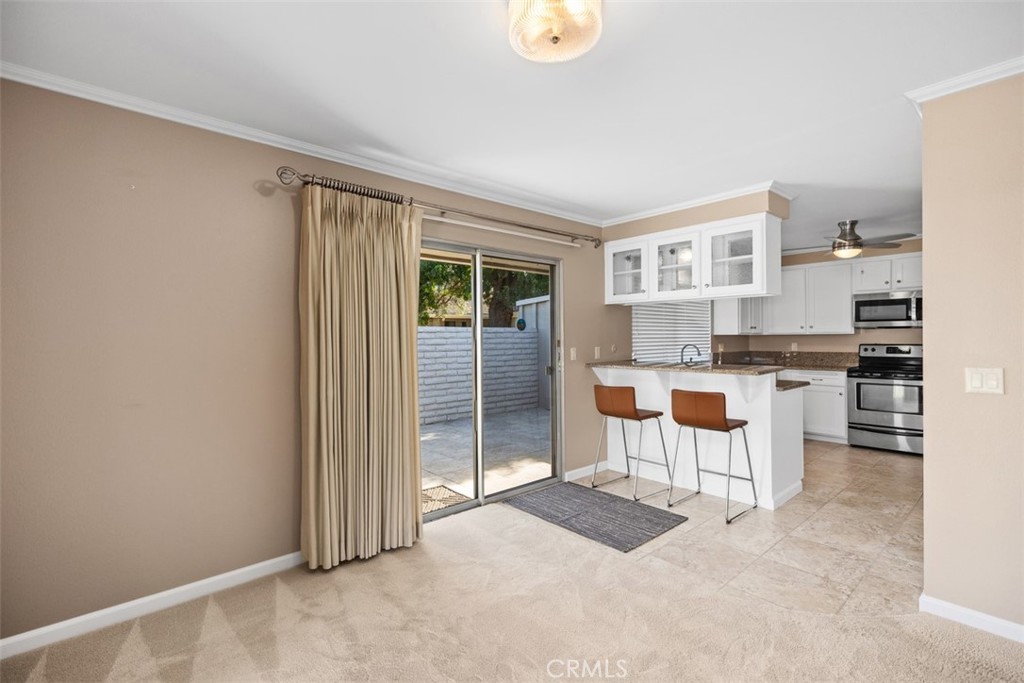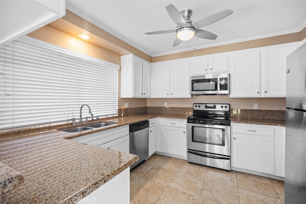 Whistle clean single-level attached home in the Senior Community of San Juan Hills West. Close to San Juan Golf Course, freeway and shopping. Light beige plush carpet, tiled flooring, an adorable kitchen with all white kitchen cabinets and a new stainless steel microwave. Stainless steel stove, and refrigerator included, counter top for dining includes adorable chairs. Laundry area is off the kitchen and includes a washer and dryer, granite countertops. Kitchen abuts to very large patio area that includes a storage area. Open floor plan with separate formal dining room, the second bedroom is open, perfect for an in-home office or TV room. This second bedroom does have a closet. Bathrooms are wonderful and spacious. The primary bath has an unusual square tub/shower combo, new vanity mirrors with state-of-the-art lighting. Second bath also has wonderful new circular mirror Tub and shower. Great walk-in closet with built-in shelving and drawers. Close to the community pool but not too close. The garage is close by but detached. Newly painted interior throughout this immaculate unit. Termite work is being done by the HOA. Lovely Ceiling fans in the kitchen and in the extremely large Primary bedroom, which includes another private patio area. Turnkey move-in.