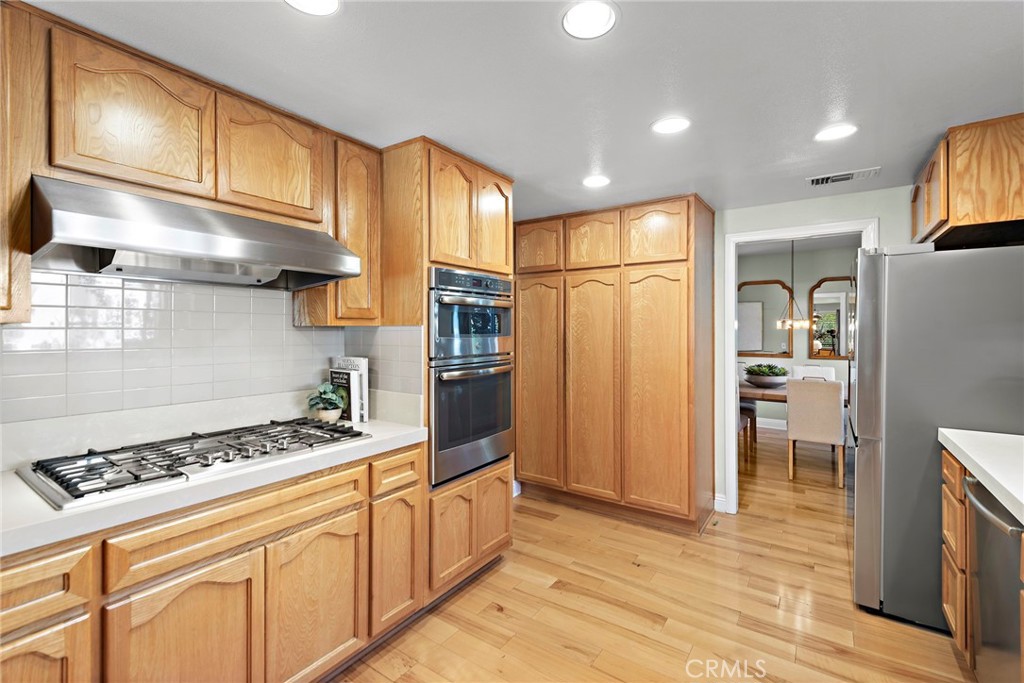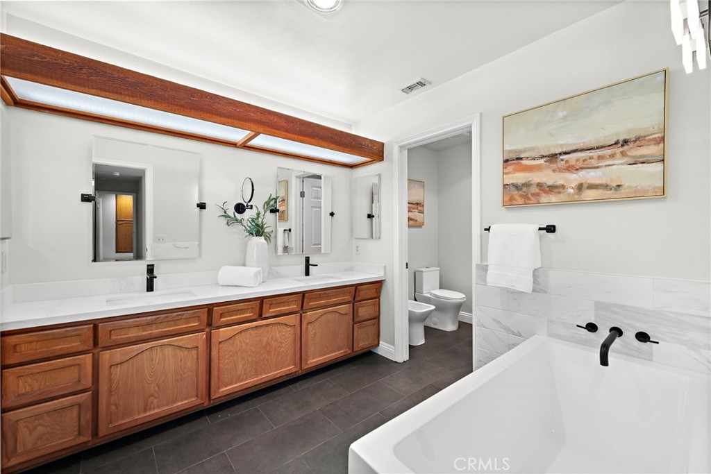 Welcome to 2815 North Kingsgate Drive, a stunning residence nestled in the heart of Orange. This elegant 5-bedroom, 4 bathroom home spans an impressive 3,000 square feet and is situated on a generous 11,480-square-foot lot, offering ample space for both indoor and outdoor living. As you step inside, you are greeted by a spacious and inviting family room area, perfect for entertaining or relaxing. The downstairs features a custom ADA-compliant bathroom attached to a bedroom or office, providing convenience and accessibility for all. The beautiful kitchen incorporates easy access to the dining and living room, boasting newer appliances, gorgeous cabinetry and, and breakfast bar and in-dining kitchenette area. The floor plan ensures that each space flows effortlessly into the next, creating a harmonious living experience. The primary suite is a true retreat, offering a luxurious en-suite bathroom and ample closet space. The additional bedrooms are generously sized and share well-appointed bathrooms, ensuring comfort and privacy for all residents. One of the standout features of this home is the RV garage with a pass-through, perfect for storing recreational vehicles or additional cars. The expansive backyard and pool are a private oasis, ideal for outdoor gatherings or simply unwinding after a long day. Dual solar systems are both owned outright and convey with the property for your usage. This 24 hour guard gated community boasts privacy and security. Experience the perfect blend of elegance and functionality at Hillcrest at Nohl Ranch. This exceptional home awaits your personal touch.