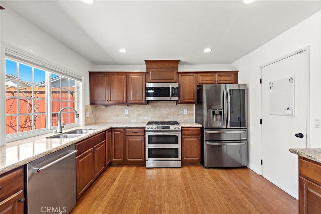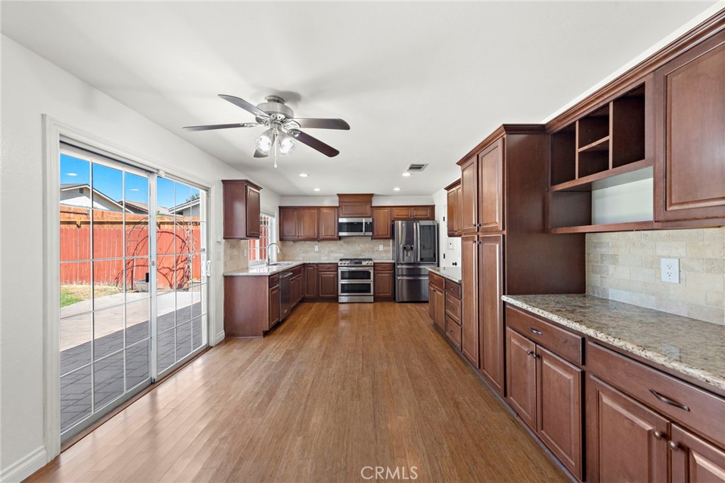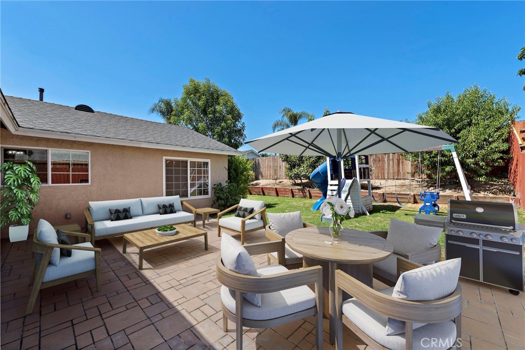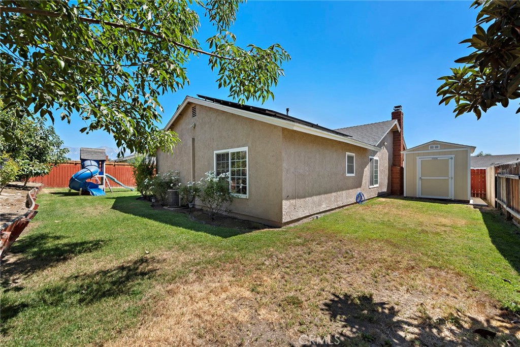 Welcome to this elegant single story 4-bedroom, 2-bathroom residence, showcasing a refined sense of style and comfort. With a generous 1600 square feet of living space, this home is situated on a spacious 7270 square foot lot, offering a perfect blend of indoor and outdoor living. Upon entering, the home boasts upgraded paint and flooring, creating an inviting ambiance throughout. The open kitchen is a chef's delight, featuring modern amenities and ample space for culinary creations. The inclusion of a washer and dryer unit ensures convenience, while air conditioning provides year-round comfort. The primary bedroom offers a private retreat, and the additional bedrooms provide flexibility for a home office or guest accommodations. Both bathrooms were just beautifully remodeled as well as the front entry when you step into the home. Outside, the back yard provides a serene oasis for relaxation and entertaining, with ample space for outdoor activities. Including a generously sized Tuff Shed on the left side of the home. Furthermore, this home comes equipped with 25 owned solar panels, offering both environmental and cost-saving benefits. With a 2 car epoxied garage and ample parking with a widened driveway included, the convenience of this residence is further elevated. This home offers a seamless balance of sophistication and practicality, making it an ideal place to call home. Don't miss the opportunity to experience the elevated lifestyle offered by this beautiful single story property.