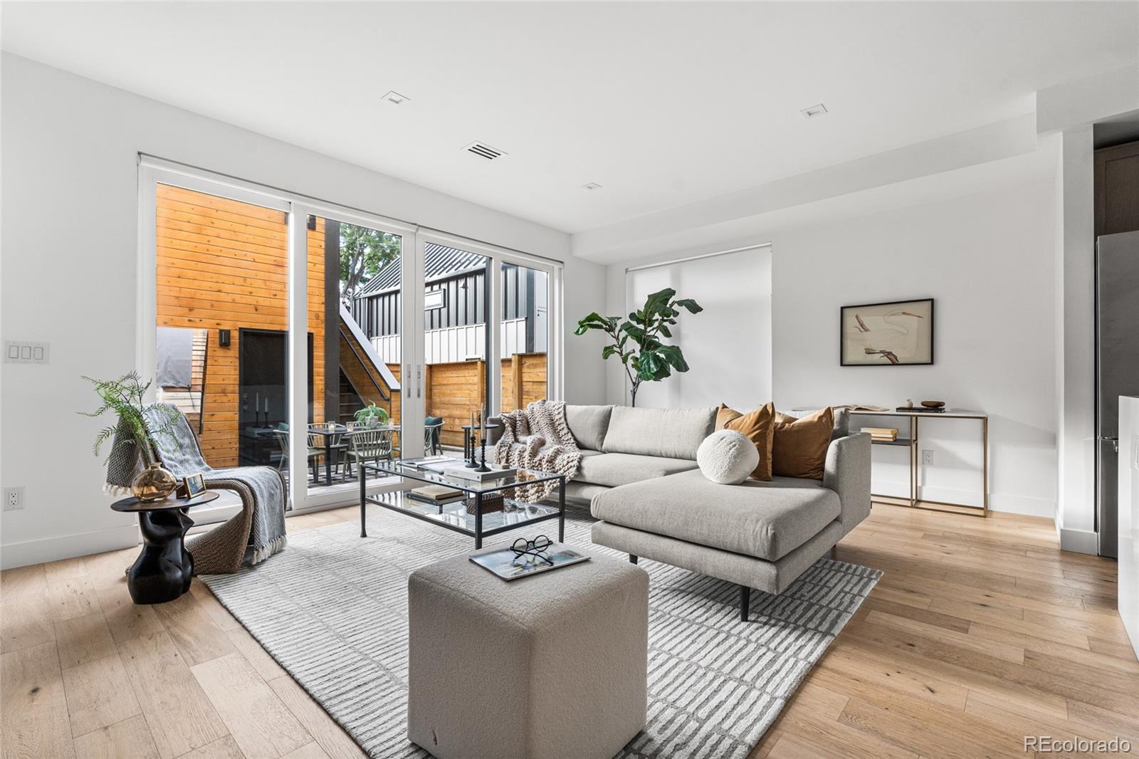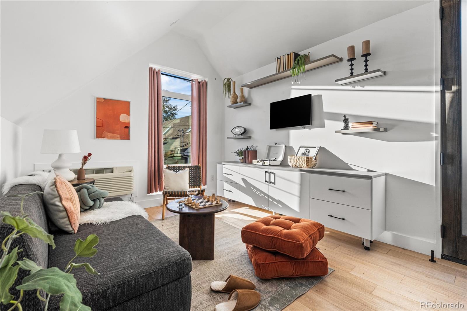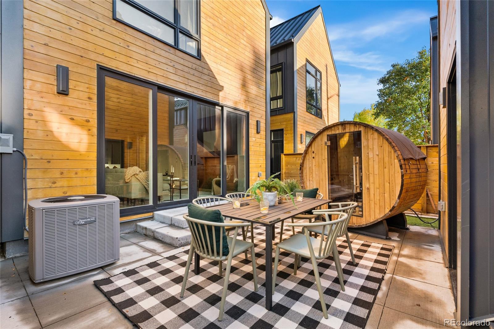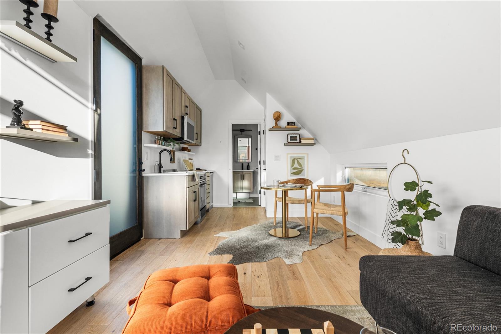 Welcome to this stunning, design-forward 3-bedroom, 3-bathroom home in Denver's vibrant Cole neighborhood, featuring a 322 sq. ft. Accessory Dwelling Unit (ADU) above the garage for added income. Thoughtfully crafted with both style and functionality, this residence blends modern luxury, comfort, and investment potential. Inside, an open-concept floorplan is flooded with natural light and adorned with high-end designer finishes. The spacious living and dining areas flow seamlessly into the gourmet kitchen, showcasing an oversized island, SS appliances--including double ovens--custom cabinetry, filtered hot/cold water tap, wine fridge, walk-in food pantry, and luxury fixtures. A custom steel-wrapped fireplace anchors the family room, while sliding doors open to a private, fully fenced courtyard--ideal for entertaining or quiet relaxation, including your own private sauna. Upstairs, the primary bedroom boasts vaulted ceilings, a sleek fireplace, and a private balcony for serene outdoor enjoyment. The spa-inspired ensuite bathroom features dual vanities, a soaking tub, and a stunning tiled glass-enclosed shower, while a large walk-in closet with custom shelving completes the suite. Two additional bedrooms, a full bathroom, and a convenient laundry closet with washer dryer complete the upper level. Additional highlights include: floor-to-ceiling windows, retractable custom blinds, designer lighting, and a gas line for easy outdoor grilling on the walkout, side patio. The oversized epoxy-coated garage is heated, and includes custom built-in shelving, and a designated washer/dryer for the ADU guests. Above the garage you will find the complete ADU living space which enhances flexibility--ideal as a long- or short-term rental, guest suite, or creative studio, complete with a kitchenette, oven, stove top, fridge, and 3/4 bath. With its thoughtful design, versatility, and prime location near Denver's best Rino dining and nightlife, this gem is the perfect place to call home.