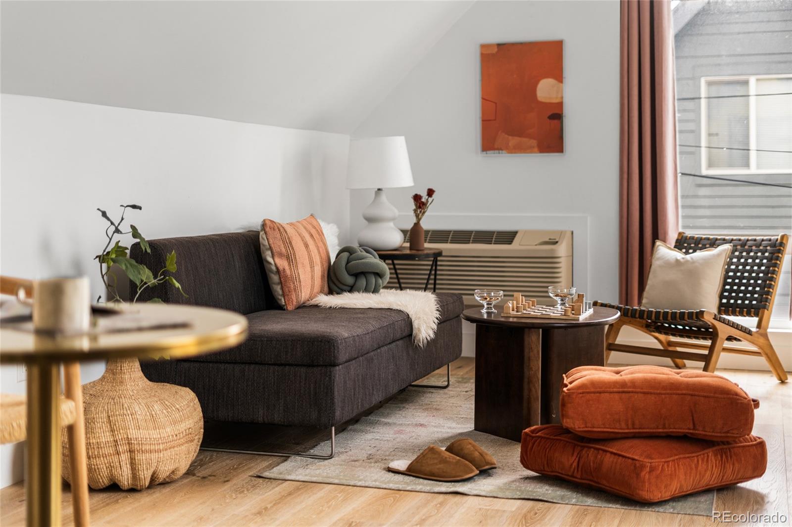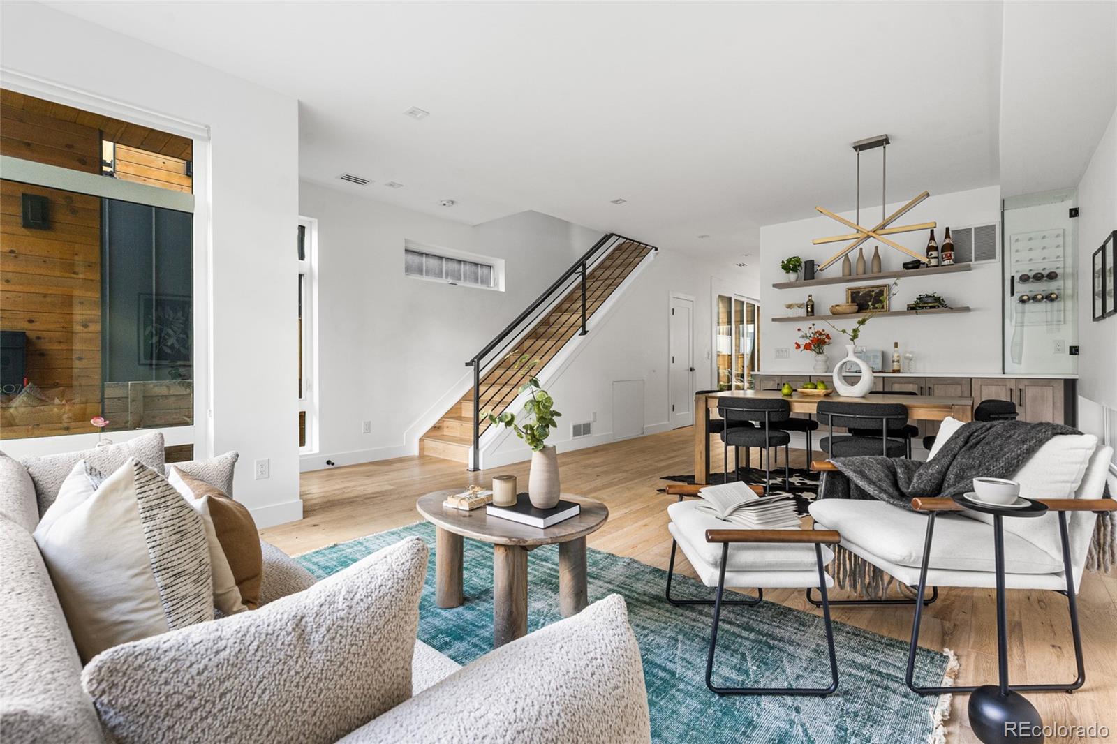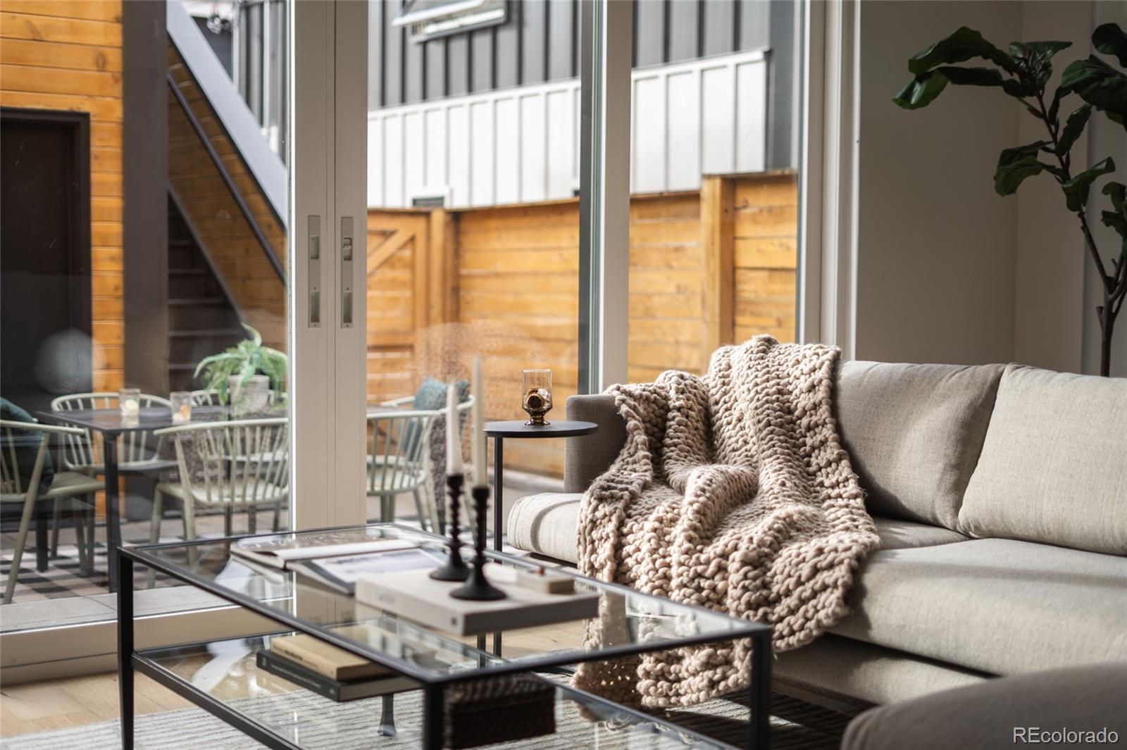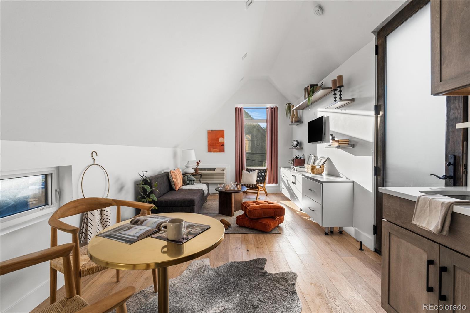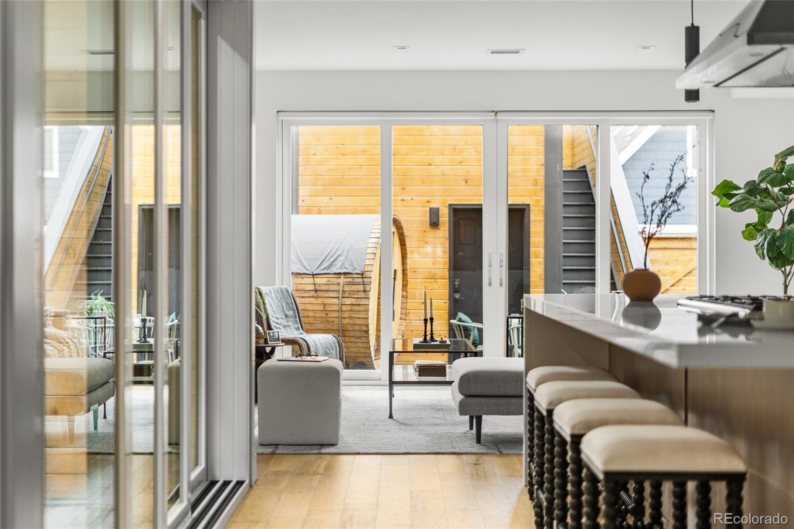 Welcome to this stunning, design-forward 3-bedroom, 3-bathroom home in Denver's vibrant Cole neighborhood, featuring a 322 sq. ft. Accessory Dwelling Unit (ADU) above the garage for added income. Thoughtfully crafted with both style and functionality, this residence blends modern luxury, comfort, and investment potential. Inside, an open-concept floorplan is flooded with natural light and adorned with high-end designer finishes. The spacious living and dining areas flow seamlessly into the gourmet kitchen, showcasing an oversized island, SS appliances--including double ovens--custom cabinetry, filtered hot/cold water tap, wine fridge, walk-in food pantry, and luxury fixtures. A custom steel-wrapped fireplace anchors the family room, while sliding doors open to a private, fully fenced courtyard--ideal for entertaining or quiet relaxation, including your own private sauna. Upstairs, the primary bedroom boasts vaulted ceilings, a sleek fireplace, and a private balcony for serene outdoor enjoyment. The spa-inspired ensuite bathroom features dual vanities, a soaking tub, and a stunning tiled glass-enclosed shower, while a large walk-in closet with custom shelving completes the suite. Two additional bedrooms, a full bathroom, and a convenient laundry closet with washer dryer complete the upper level. Additional highlights include: floor-to-ceiling windows, retractable custom blinds, designer lighting, and a gas line for easy outdoor grilling on the walkout, side patio. The oversized epoxy-coated garage is heated, and includes custom built-in shelving, and a designated washer/dryer for the ADU guests. Above the garage you will find the complete ADU living space which enhances flexibility--ideal as a long- or short-term rental, guest suite, or creative studio, complete with a kitchenette, oven, stove top, fridge, and 3/4 bath. With its thoughtful design, versatility, and prime location near Denver's best Rino dining and nightlife, this gem is the perfect place to call home.