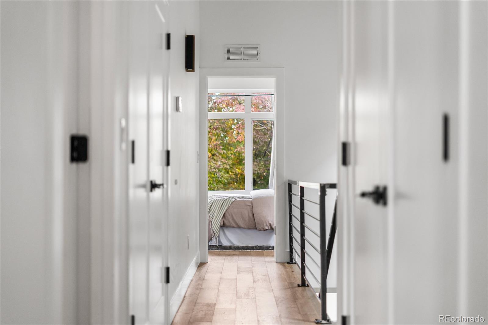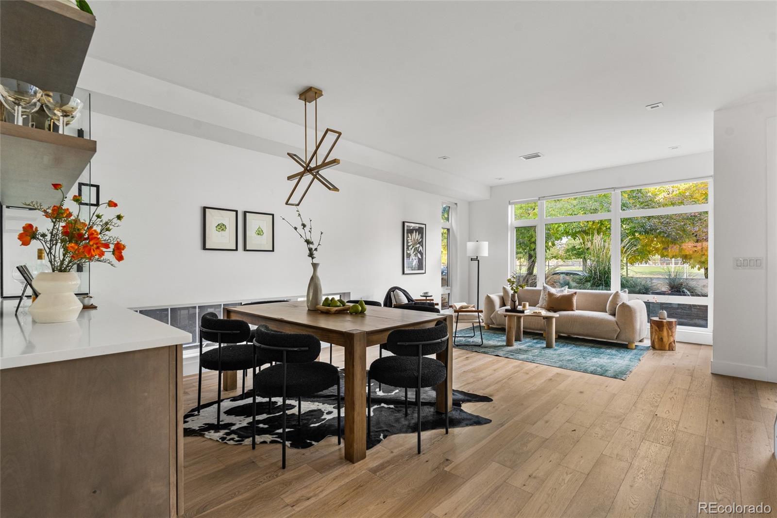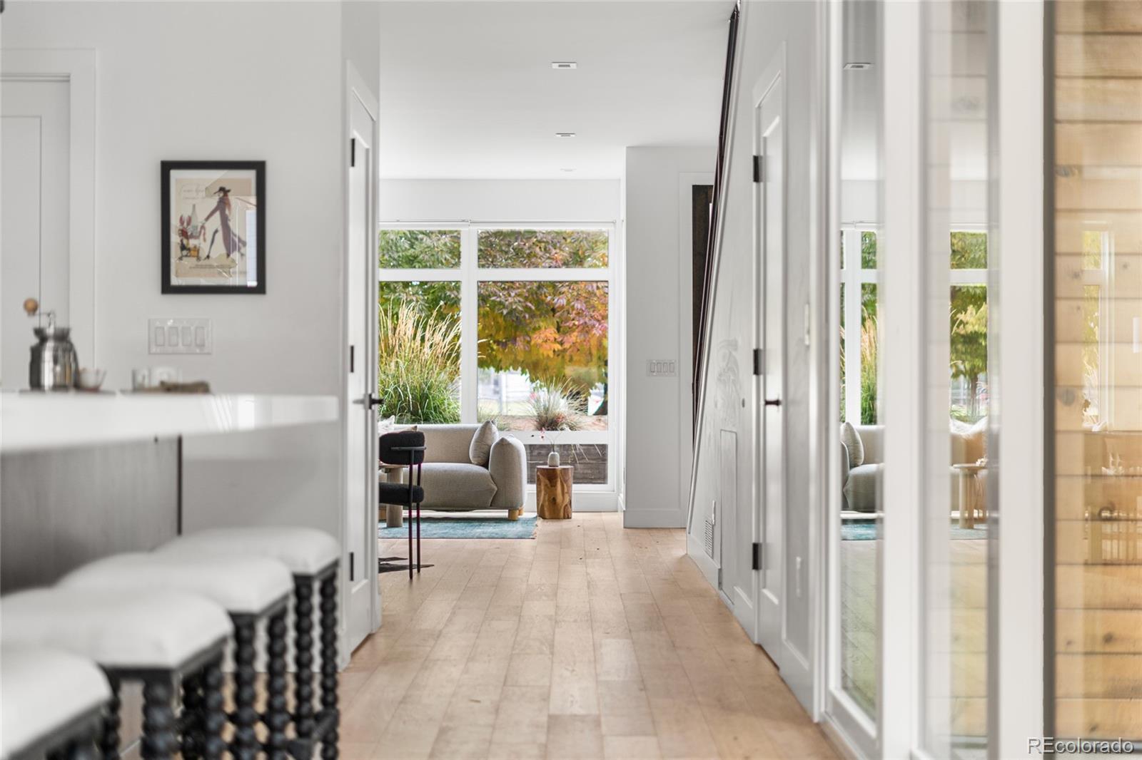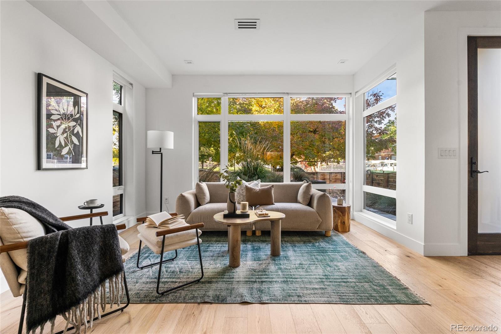 Welcome to this stunning, design-forward 3-bedroom, 3-bathroom home in Denver's vibrant Cole neighborhood, featuring a 322 sq. ft. Accessory Dwelling Unit (ADU) above the garage for added income. Thoughtfully crafted with both style and functionality, this residence blends modern luxury, comfort, and investment potential. Inside, an open-concept floorplan is flooded with natural light and adorned with high-end designer finishes. The spacious living and dining areas flow seamlessly into the gourmet kitchen, showcasing an oversized island, SS appliances--including double ovens--custom cabinetry, filtered hot/cold water tap, wine fridge, walk-in food pantry, and luxury fixtures. A custom steel-wrapped fireplace anchors the family room, while sliding doors open to a private, fully fenced courtyard--ideal for entertaining or quiet relaxation, including your own private sauna. Upstairs, the primary bedroom boasts vaulted ceilings, a sleek fireplace, and a private balcony for serene outdoor enjoyment. The spa-inspired ensuite bathroom features dual vanities, a soaking tub, and a stunning tiled glass-enclosed shower, while a large walk-in closet with custom shelving completes the suite. Two additional bedrooms, a full bathroom, and a convenient laundry closet with washer dryer complete the upper level. Additional highlights include: floor-to-ceiling windows, retractable custom blinds, designer lighting, and a gas line for easy outdoor grilling on the walkout, side patio. The oversized epoxy-coated garage is heated, and includes custom built-in shelving, and a designated washer/dryer for the ADU guests. Above the garage you will find the complete ADU living space which enhances flexibility--ideal as a long- or short-term rental, guest suite, or creative studio, complete with a kitchenette, oven, stove top, fridge, and 3/4 bath. With its thoughtful design, versatility, and prime location near Denver's best Rino dining and nightlife, this gem is the perfect place to call home.