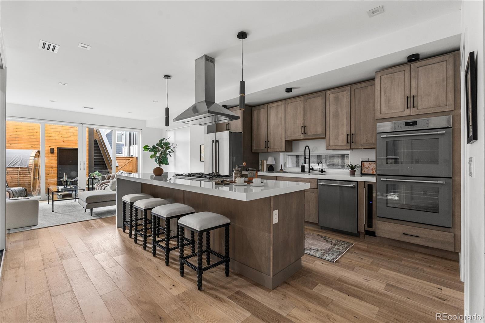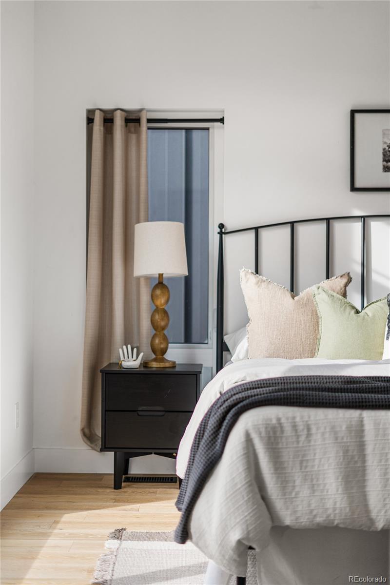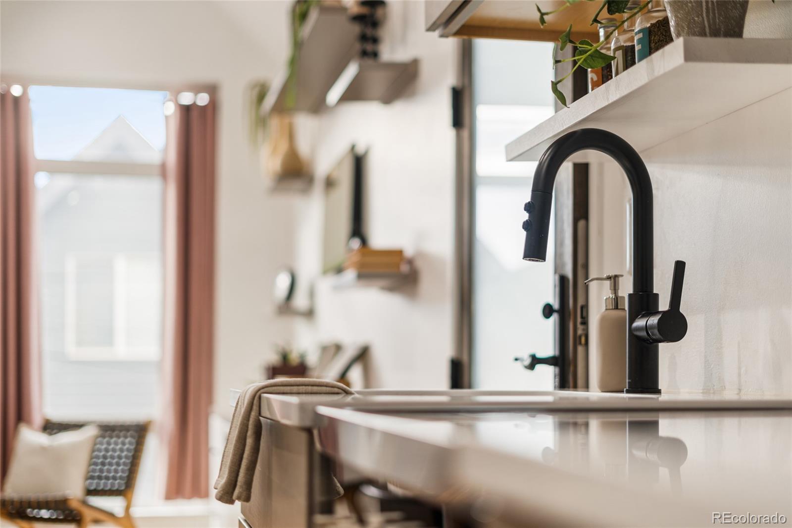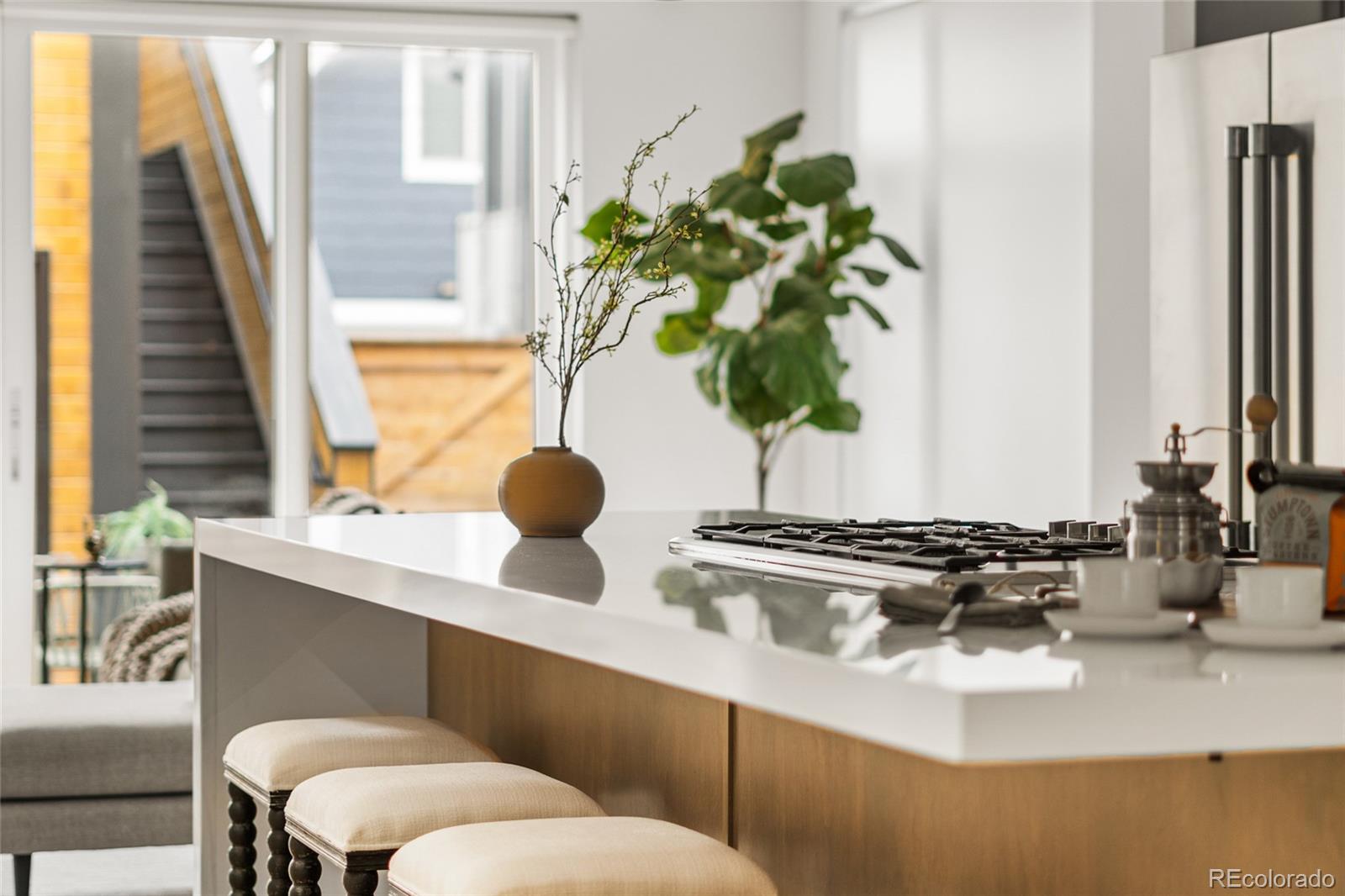 Welcome to this stunning, design-forward 3-bedroom, 3-bathroom home in Denver's vibrant Cole neighborhood, featuring a 322 sq. ft. Accessory Dwelling Unit (ADU) above the garage for added income. Thoughtfully crafted with both style and functionality, this residence blends modern luxury, comfort, and investment potential. Inside, an open-concept floorplan is flooded with natural light and adorned with high-end designer finishes. The spacious living and dining areas flow seamlessly into the gourmet kitchen, showcasing an oversized island, SS appliances--including double ovens--custom cabinetry, filtered hot/cold water tap, wine fridge, walk-in food pantry, and luxury fixtures. A custom steel-wrapped fireplace anchors the family room, while sliding doors open to a private, fully fenced courtyard--ideal for entertaining or quiet relaxation, including your own private sauna. Upstairs, the primary bedroom boasts vaulted ceilings, a sleek fireplace, and a private balcony for serene outdoor enjoyment. The spa-inspired ensuite bathroom features dual vanities, a soaking tub, and a stunning tiled glass-enclosed shower, while a large walk-in closet with custom shelving completes the suite. Two additional bedrooms, a full bathroom, and a convenient laundry closet with washer dryer complete the upper level. Additional highlights include: floor-to-ceiling windows, retractable custom blinds, designer lighting, and a gas line for easy outdoor grilling on the walkout, side patio. The oversized epoxy-coated garage is heated, and includes custom built-in shelving, and a designated washer/dryer for the ADU guests. Above the garage you will find the complete ADU living space which enhances flexibility--ideal as a long- or short-term rental, guest suite, or creative studio, complete with a kitchenette, oven, stove top, fridge, and 3/4 bath. With its thoughtful design, versatility, and prime location near Denver's best Rino dining and nightlife, this gem is the perfect place to call home.