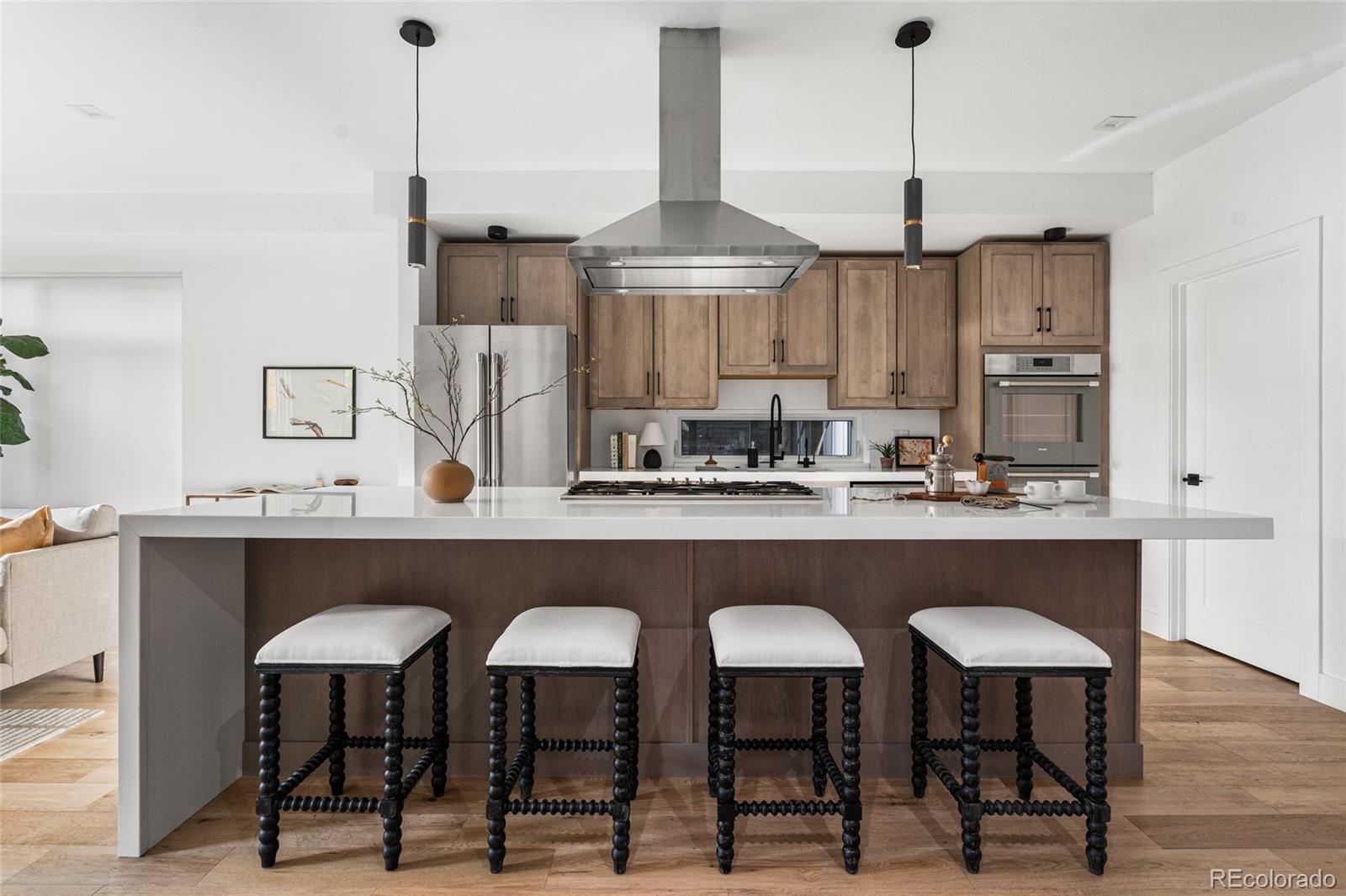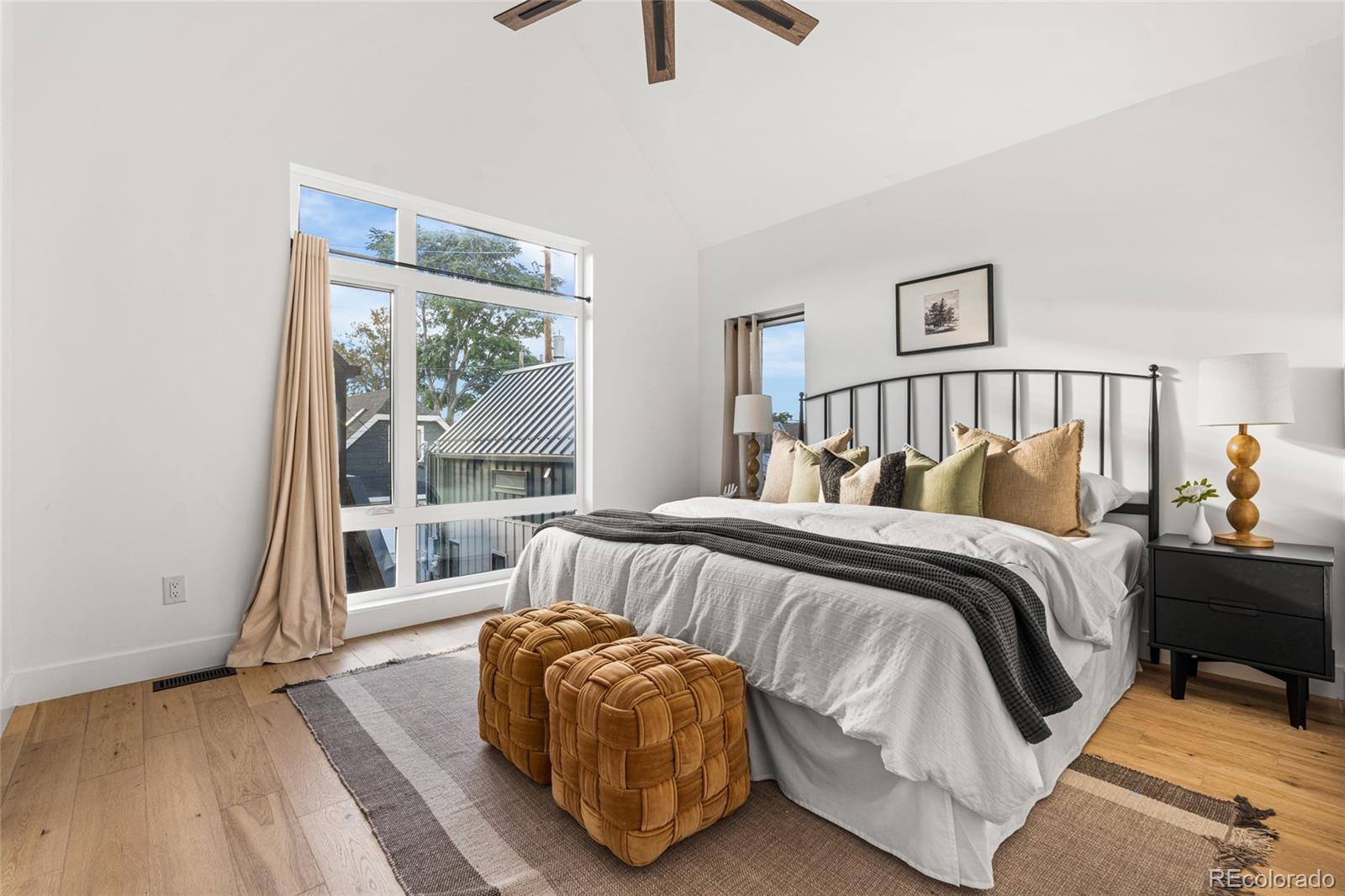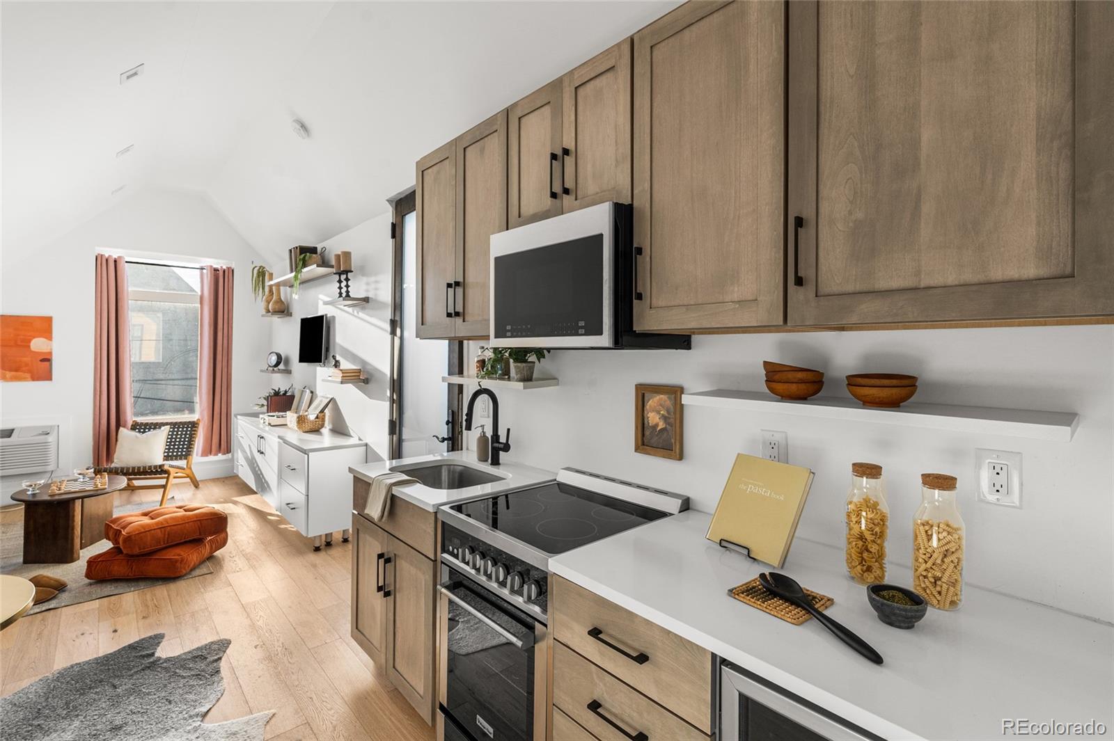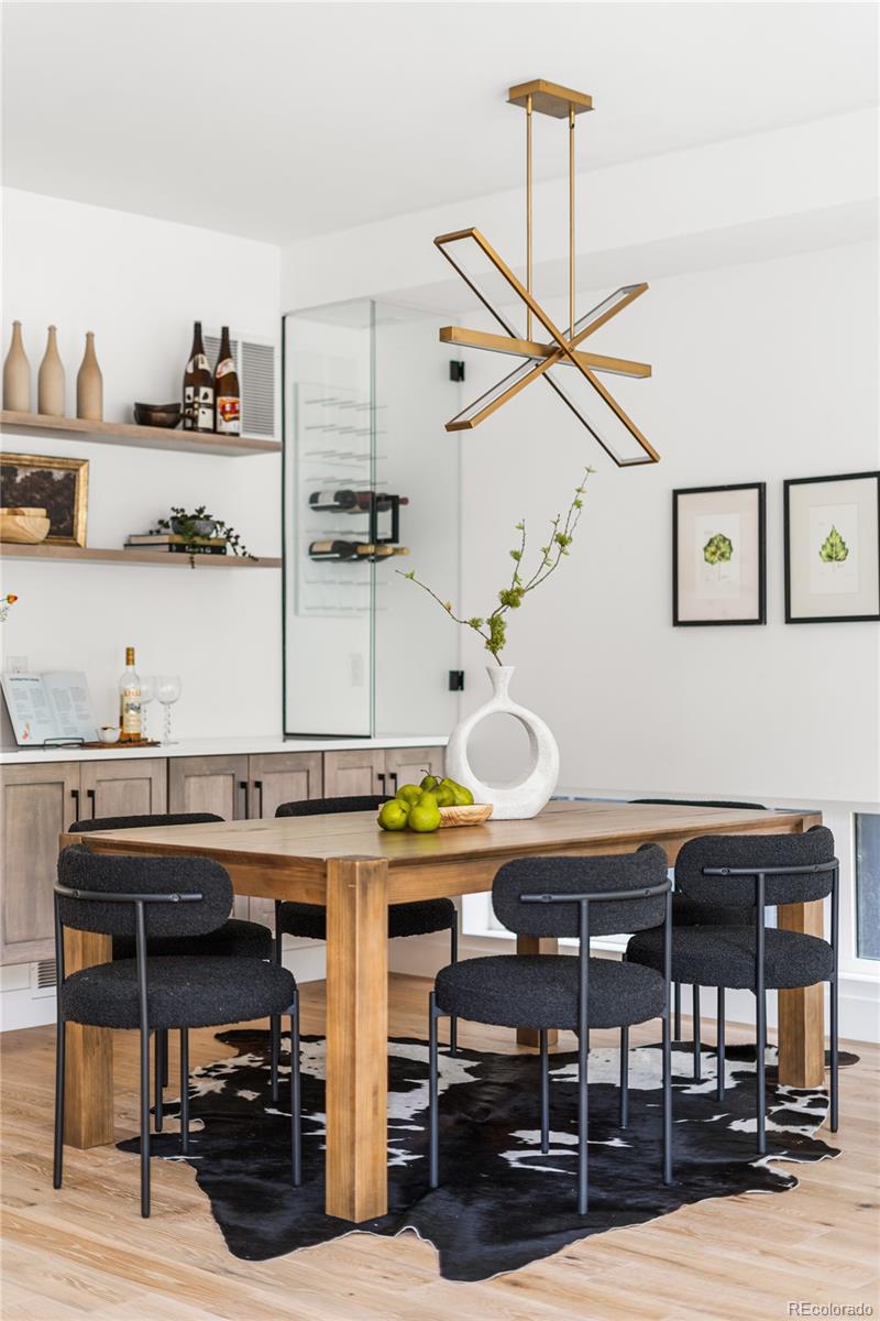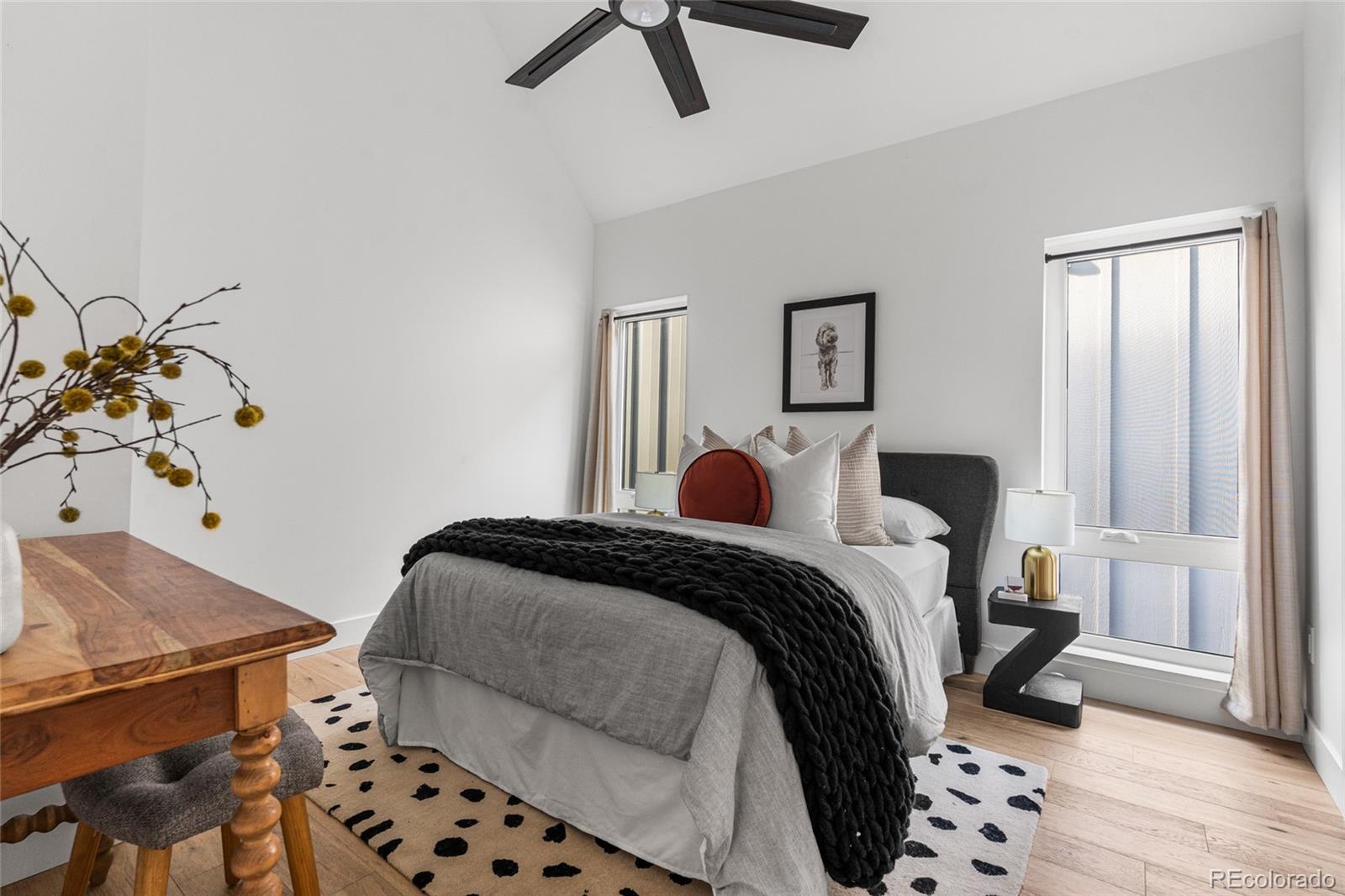Welcome to this stunning, design-forward 3-bedroom, 3-bathroom home in Denver's vibrant Cole neighborhood, featuring a 322 sq. ft. Accessory Dwelling Unit (ADU) above the garage for added income. Thoughtfully crafted with both style and functionality, this residence blends modern luxury, comfort, and investment potential. Inside, an open-concept floorplan is flooded with natural light and adorned with high-end designer finishes. The spacious living and dining areas flow seamlessly into the gourmet kitchen, showcasing an oversized island, SS appliances--including double ovens--custom cabinetry, filtered hot/cold water tap, wine fridge, walk-in food pantry, and luxury fixtures. A custom steel-wrapped fireplace anchors the family room, while sliding doors open to a private, fully fenced courtyard--ideal for entertaining or quiet relaxation, including your own private sauna. Upstairs, the primary bedroom boasts vaulted ceilings, a sleek fireplace, and a private balcony for serene outdoor enjoyment. The spa-inspired ensuite bathroom features dual vanities, a soaking tub, and a stunning tiled glass-enclosed shower, while a large walk-in closet with custom shelving completes the suite. Two additional bedrooms, a full bathroom, and a convenient laundry closet with washer dryer complete the upper level. Additional highlights include: floor-to-ceiling windows, retractable custom blinds, designer lighting, and a gas line for easy outdoor grilling on the walkout, side patio. The oversized epoxy-coated garage is heated, and includes custom built-in shelving, and a designated washer/dryer for the ADU guests. Above the garage you will find the complete ADU living space which enhances flexibility--ideal as a long- or short-term rental, guest suite, or creative studio, complete with a kitchenette, oven, stove top, fridge, and 3/4 bath. With its thoughtful design, versatility, and prime location near Denver's best Rino dining and nightlife, this gem is the perfect place to call home.