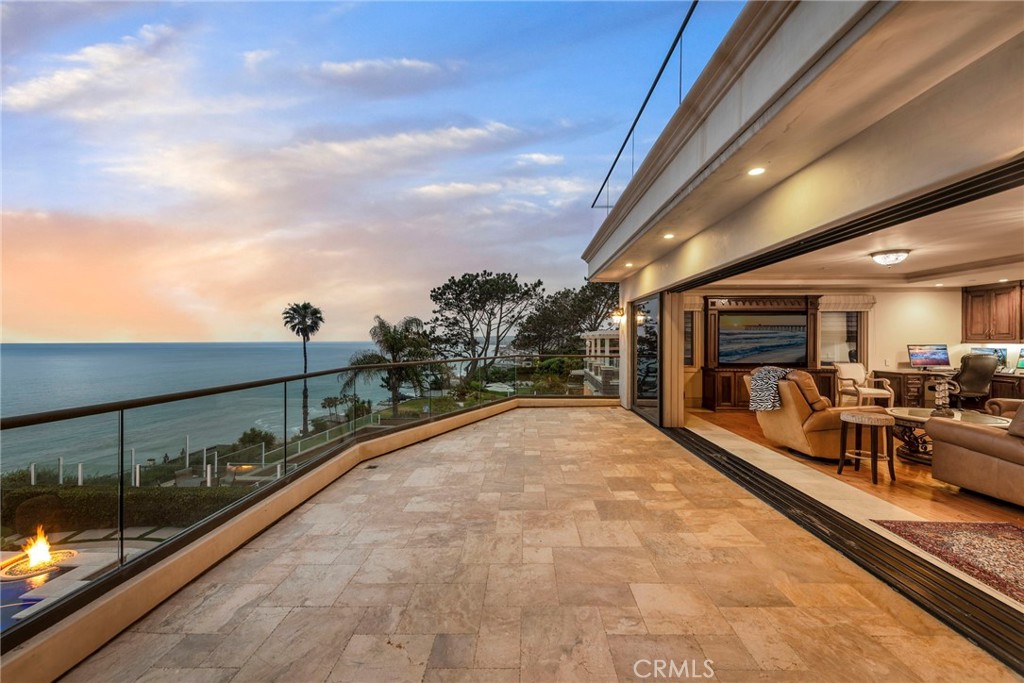 Welcome to one of San Clemente's most incredible bluff-front estates, offering unobstructed ocean views from Dana Point Harbor to Catalina Island and stretching south to Cottons Point. This custom-built masterpiece is the epitome of Southern California coastal living -- refined, relaxed, and remarkably private. A private gate leads to a long, elegant driveway revealing an architectural gem where walls of sliding glass effortlessly blur the line between indoor and outdoor living. Inside, a meticulously designed open floorplan unfolds with 4 spacious bedrooms including a main-level guest suite with a full bath and three upstairs ensuite bedrooms. The primary suite is a true retreat with its own private ocean-view patio, dual-sided fireplace, soaking tub, 3-head shower, and a custom walk-in closet that rivals any luxury boutique. The heart of the home is the chef's kitchen featuring a grand center island, top-of-the-line Wolf appliances (6-burner range, three ovens, warming drawer, microwave), an integrated dual oversized refrigerator, walk-in pantry, and sleek finishes throughout. The oceanfront great room flows seamlessly from the kitchen and includes a wet bar with wine refrigerator, a cozy fireplace, and views that take your breath away. Step outside into a true resort-style backyard, perched dramatically atop the highly desired capistrano bluff. Enjoy a sparkling water feature framed by dual fire pits, a BBQ area, two covered loggias, a large artificial turf area with putting green, and plenty of seating spaces to soak in the panoramic views. For ultimate leisure and entertainment, ascend to the roof deck with its private jacuzzi and built-in bar ideal for sunset gatherings, star-filled nights, or watching the coastal firework shows on the 4th of July. Additional mentions throughout the home include a home generator, central vacuum system, purified water system, and advanced security and sound systems. The expansive layout also includes a luxurious formal living room, an upstairs bonus room with patio access, a spacious upstairs laundry room, and a 3-car garage (2-car tandem plus single). This estate places you just minutes from the San Clemente Pier, Del Mar Street, Dana Point Harbor, and the vibrant Lantern District--offering world-class dining, shopping, and the very best of the coastal lifestyle. This is not just a home--it's a rare opportunity to own one of the finest oceanfront properties on the Southern California coast.