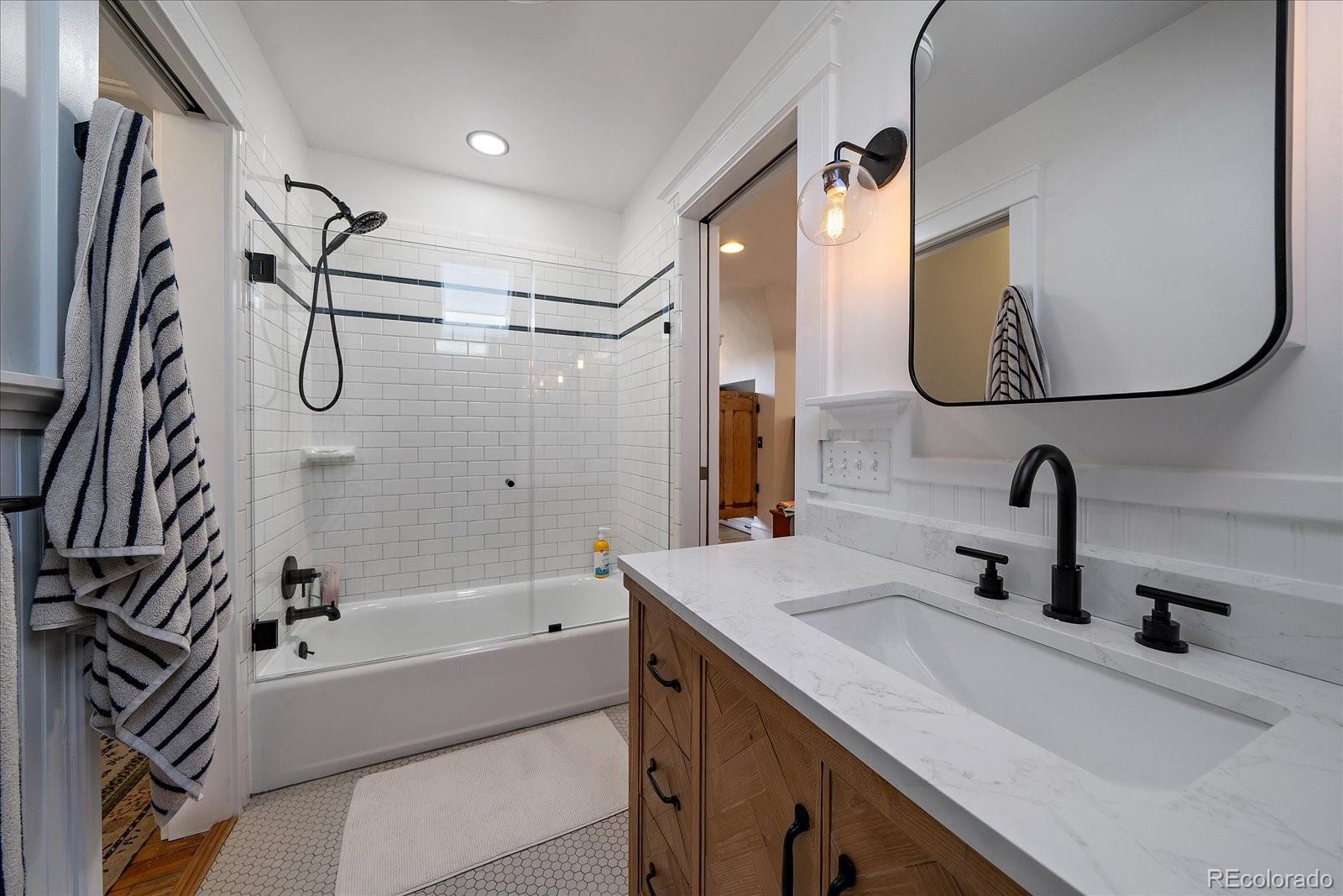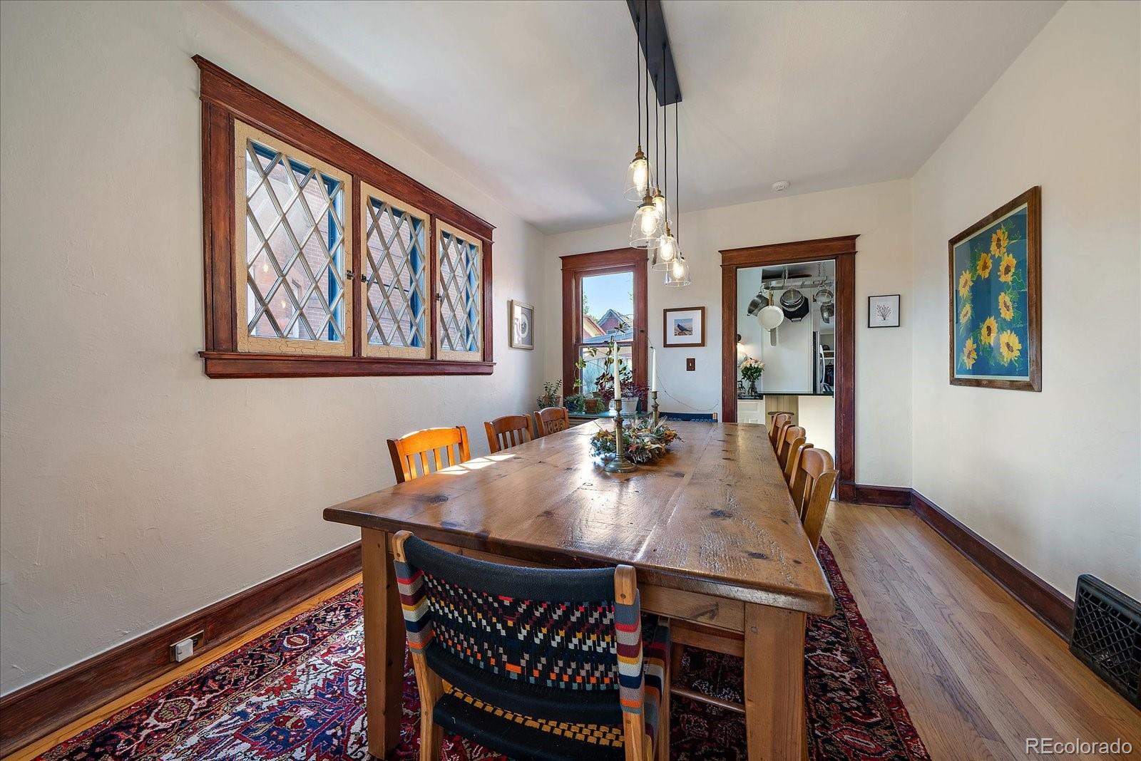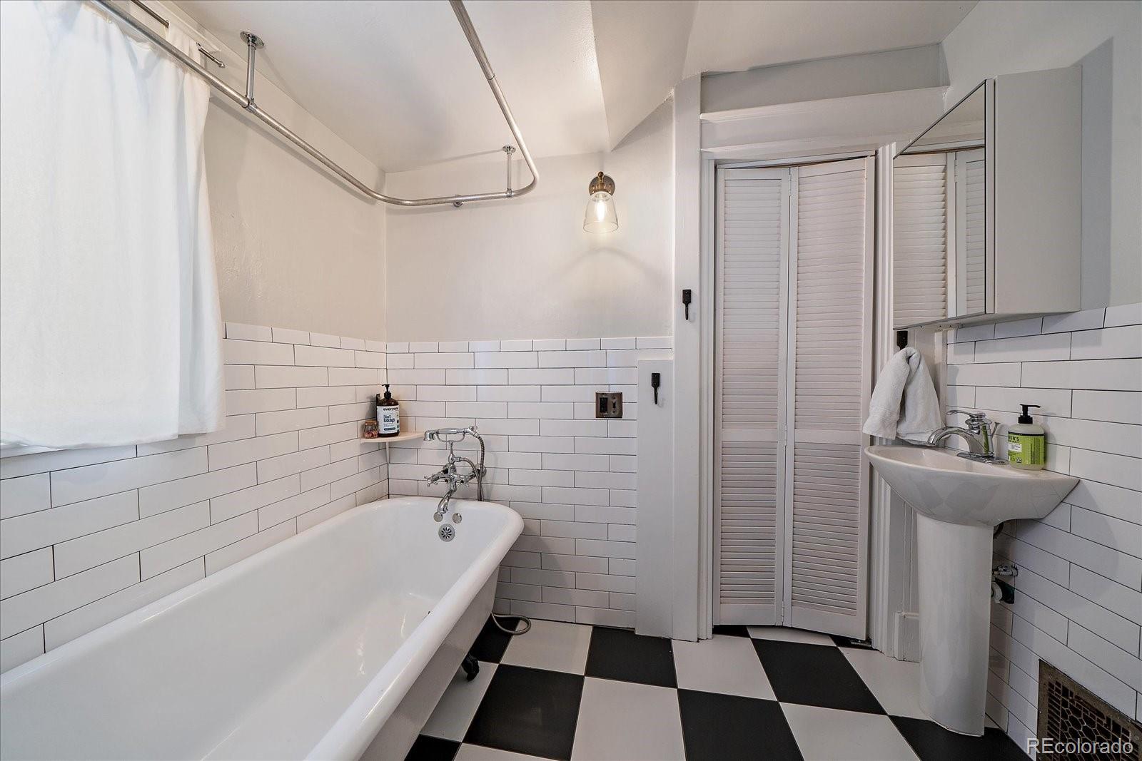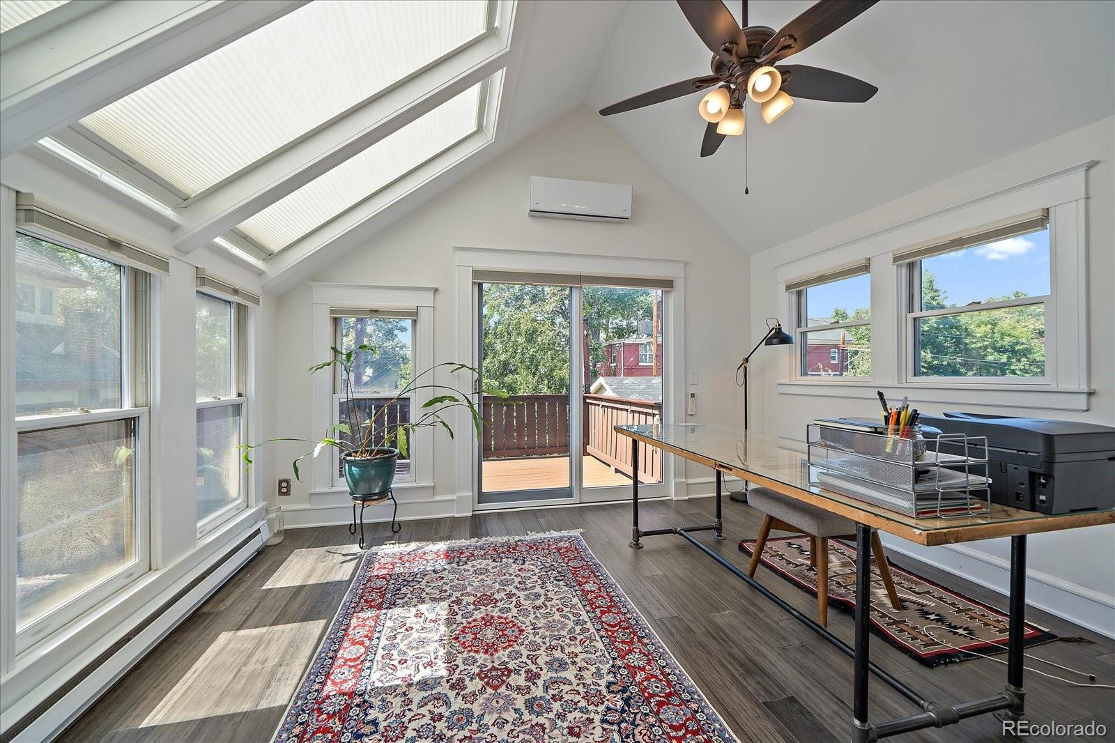 Elegant Two Story Brick Victorian with Finished Basement in Sought After Potter Highlands. Thoughtfully Remodeled While Preserving Character. Period Details Abound Featuring Tall Ceilings, Leaded Glass, Clawfoot Tub, Exposed Brick, Wainscoting, Hardwoods and Stain Grade Millwork. Kitchen Offers a Wolf Range, Farmhouse Sink, Sleek Counters, White Shaker Cabinetry and Exposed Brick. Tiled Gas Fireplace, Turn-of-the Century Mantel and Ample Seating in Living Room. Generously Sized Formal Dining with Traditional Woodwork. Mud Room with Bench Seating, Coat Hooks and Shelving. Office Space Provides a Built-In Desk, Bookshelves and Cabinets. Full Bath, Bedroom and Foyer Entry with Wooden Staircase Complete the Main Level. Primary Suite Boasting a Walk-In Closet and En Suite Bath. Bonus Room Off Primary Features a Vaulted Ceiling, Built-In Bookshelves, Private Deck and Voluminous Windows with Remote Controlled Shades. Versatile Space for Nursery, Secondary Office, Lounge, Exercise Room or Art Studio. Classic Tile, New Shower Glass Enclosure and Vanity in Primary Bath. Family Room, Bedroom with Legal Egress, Bath, Laundry and Storage in Renovated Basement. Beadboard Ceiling on Front Porch, Covered Rear Patio and Private Yard. Two Car Detached Garage with EV Charger Has Oversized Attic that Could be Converted into an ADU. Impressive Walk and Bike Scores to Myriad of Dining and Entertainment Options in Potter Highlands, LoHi, Sunnyside and 38th Corridor. Convenient Access to Highlands Square, Tennyson Street and Downtown.