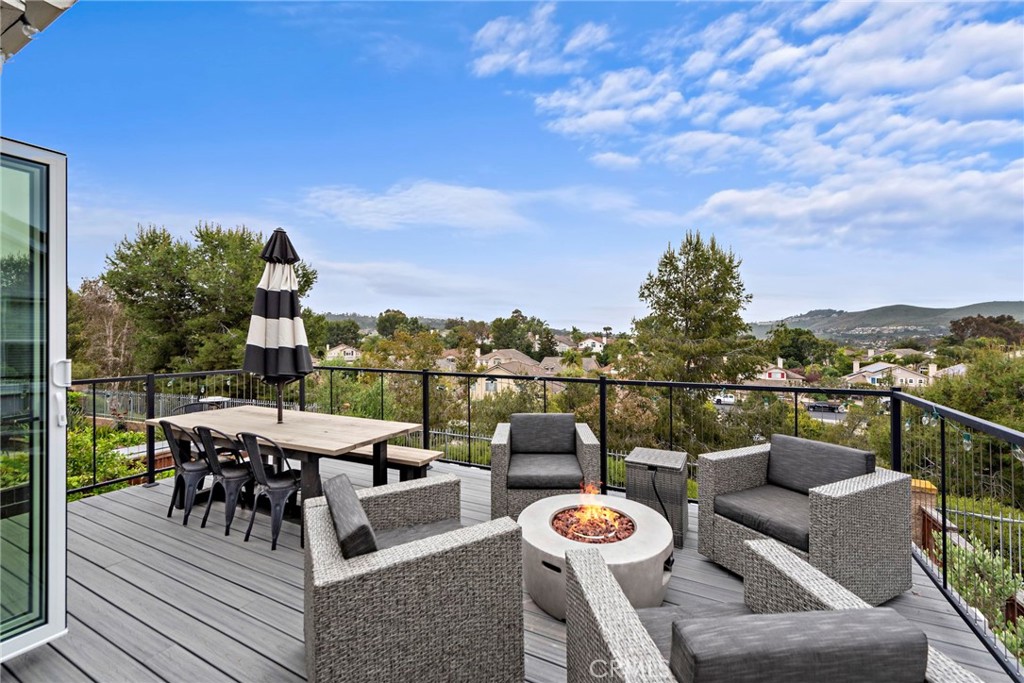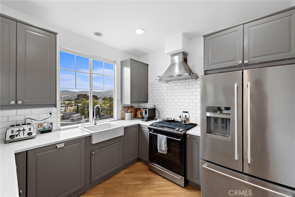 Welcome to 5730 Calle Polvorosa, a stunning residence located in the most desirable community in Forster Ranch, San Clemente. As you step inside this 3 bedroom 2.5 bathroom home, you'll be greeted by an abundance of natural light, highlighting the spacious open concept floor plan. With many areas for entertainment, the living room is equipped with accordion doors that extend out to a newly updated and large deck with endless views.The adjacent dining area flows seamlessly into the beautifully upgraded kitchen, featuring quartz countertops, tile backsplash, Whirlpool appliances, custom cabinets, farmhouse sink, stainless steel wall mount range hood, and soft closing drawers. The master suite, located upstairs, is complete with a private balcony, walk-in closet, and a luxurious en-suite bathroom with dual sinks. Downstairs are two additional bedrooms, a full bath, and open space for additional entertainment, relaxation, or an office. The backyard is a perfect space for outdoor gatherings and relaxation. Whether you're hosting a barbecue or simply enjoying a quiet morning coffee, the landscaped yard provides a serene backdrop. Take a dip in the sparkling community pool or unwind in the spa, just steps away from your front door. Conveniently located near hiking trails, great schools, shopping, dining, and freeway access, this home offers the best of San Clemente living.