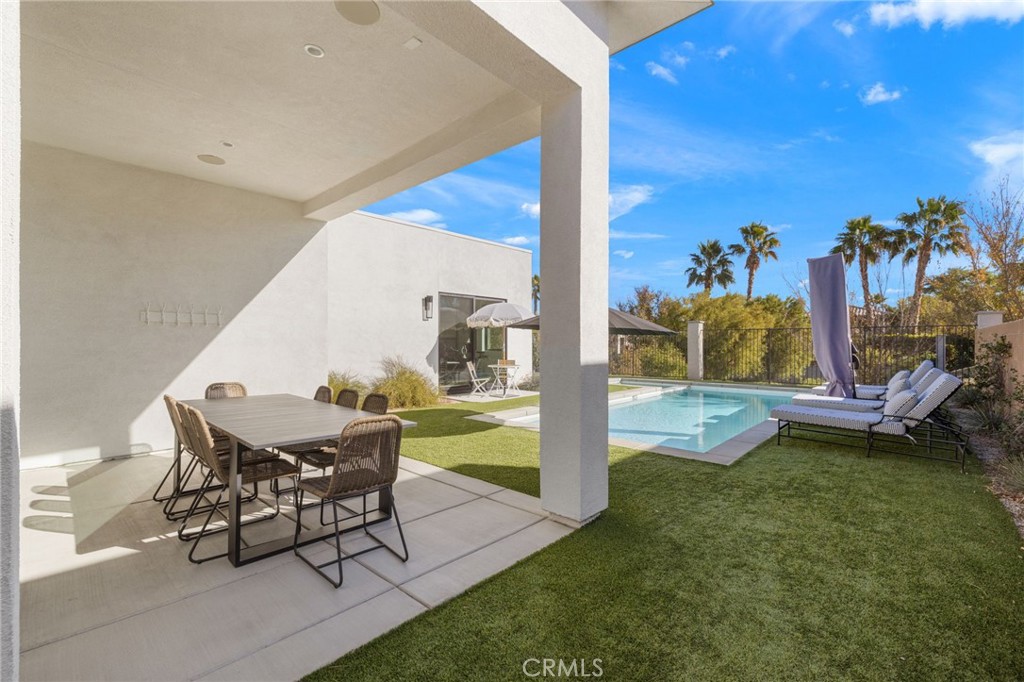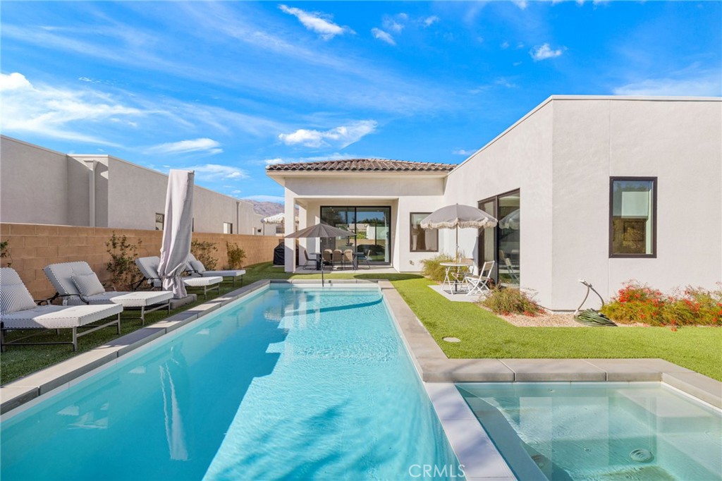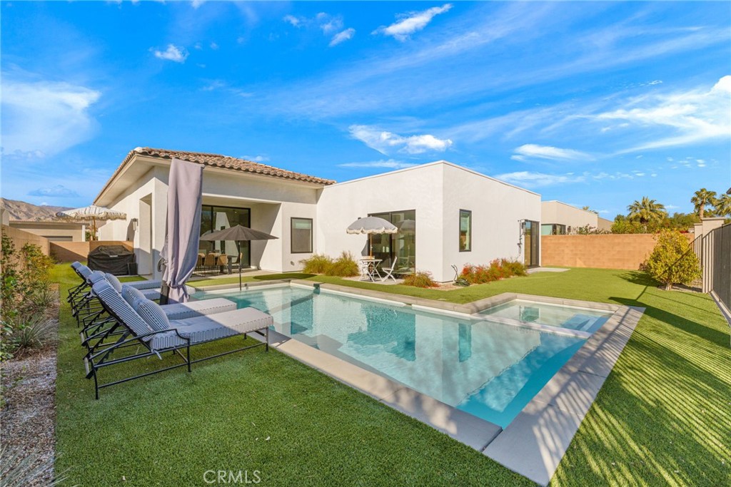 Welcome to an exquisite oasis at 57644 Santo Thomas, La Quinta, CA, where modern elegance meets serene desert living. This remarkable single-story residence spans 2,928 square feet and offers an unparalleled lifestyle with its thoughtfully designed spaces and luxurious amenities. Step inside to discover four spacious bedrooms and three and a half pristine bathrooms, each reflecting meticulous attention to detail. The open floor plan is bathed in natural light, showcasing contemporary finishes and a seamless flow for comfortable living. The heart of this home is its gourmet kitchen, perfect for culinary enthusiasts and entertaining guests. Beyond the interior, a private pool and spa await you, ideal for unwinding in tranquility or hosting memorable gatherings. Additional conveniences include in-unit washer and dryer, air conditioning, and included parking, enhancing your everyday ease. Nestled within a prestigious gated community, this home offers both peace and privacy, yet is conveniently close to the vibrant offerings of nearby shopping and downtown La Quinta. Enjoy the best of both worlds: a quiet retreat with easy access to urban amenities. Available for a minimum 30-day rental, this like-new residence invites you to experience the harmony of modern luxury in a stunning desert landscape. Indulge in the lifestyle you've always desired.