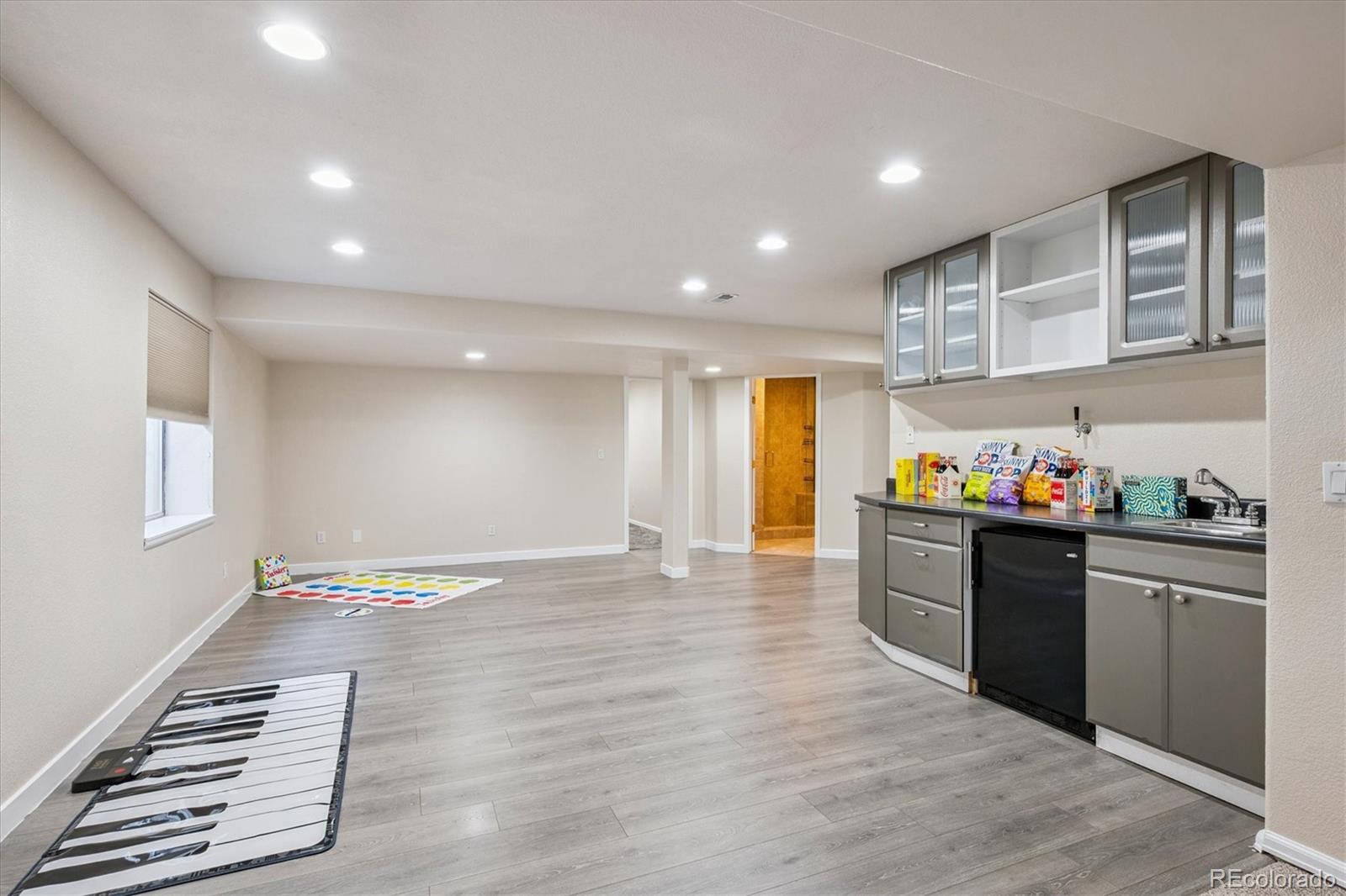 Welcome to Your New Retreat Styled Life in Grant Ranch Nestled in this Inviting Ranch Home Boasting an Open Interior Design Accented by Stunning Hardwood Floors, Granite Slabs, Brand New Carpet, Interior Paint & Sod in the Backyard Near the Expansive Patio. As you enter Grant Ranch and enjoy the peaceful drive through the tree lined streets, passing numerous pocket parks, the amazing rec center and marina you will breathe easier. As you approach the home the curb appeal will delight your senses and invite you to stay and relax. Crossing over the threshold the bayed formal living room & dining room greet you as the sparkling hardwood flows easily throughout and invites you to continue into the open kitchen, dining, and family area. Soaring vaults and abundant windows accentuate the interior with natural lighting. The kitchen features an ideal large island, abundant cabinetry, and stunning granite slabs. The dining room boasts a home office desk and flows easily into the family room w large custom built-ins, a gas fireplace for instant ambiance and access to the oversized concrete patio. The private primary bedroom hosts a 5-piece bath & large walk-in closet. Down the hall two secondary bathrooms, a full bathroom & laundry room w storage finish the main level. The finished basement boasts a huge family room w a wet bar, large bedroom w walk-in & a 3/4 bath w elegant steam shower. The location is truly ideal w easy access to various shopping, dining & conveniences along Wadsworth, as well as more outdoor fun ranging from concerts in the park to beautiful walks at Clements Park. Easy commutes are icing on the cake via Bowles to Santa Fe light rail station, for daily downtown commutes or fun outings in Denver like Bronco games, concerts or plays at the Denver Center of Performing Arts. This truly is a move in ready home just awaiting your arrival, welcome home!